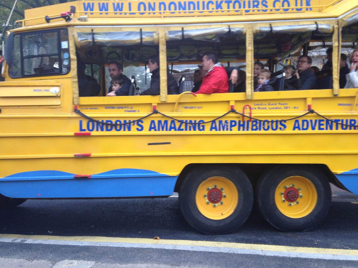 ハイライトはなんといってもテムズ川への入水時、乗客からは歓声があがりました。水上からの眺めもなかなかでしたが、遊覧船とは違って見た目が面白いのか川沿いを散策する人のなかにはこちらを撮影している姿もありました。