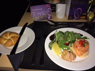 食事は前菜、メイン、デザートをそれぞれ4種類のメニューから選びます。英語表記なので、英語がわからない方はどんな料理なのかわかりにくいと思います。私もわかる単語があるメニューにしました。