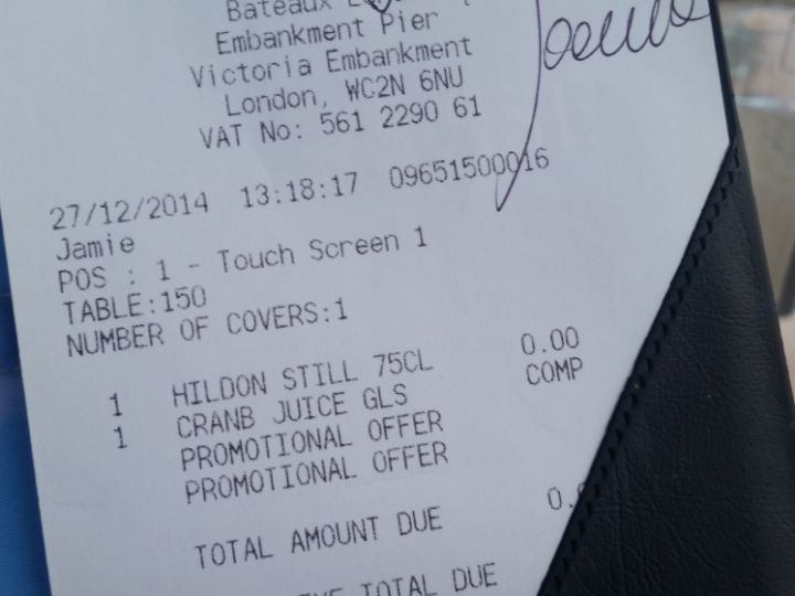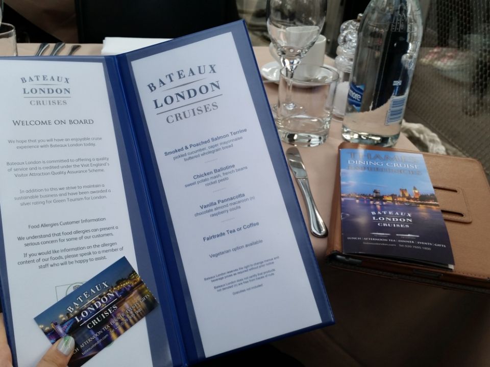 料理は普通に美味しかったです。サービスはとても時間がかかっていて食べ終わって次の皿がくるまでかなりあり、アッパーデッキなどに出て夜景を楽しみました。アッパーデッキからの夜景は大変素晴らしかったです。特にタワーブリッジをくぐる時(行きと帰りで2度あります)は是非デッキに出ることをお勧めします。