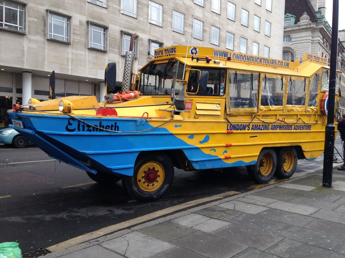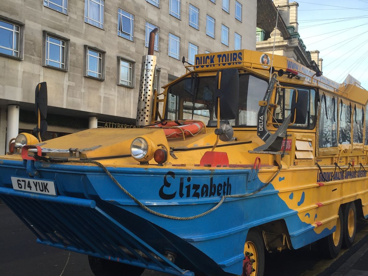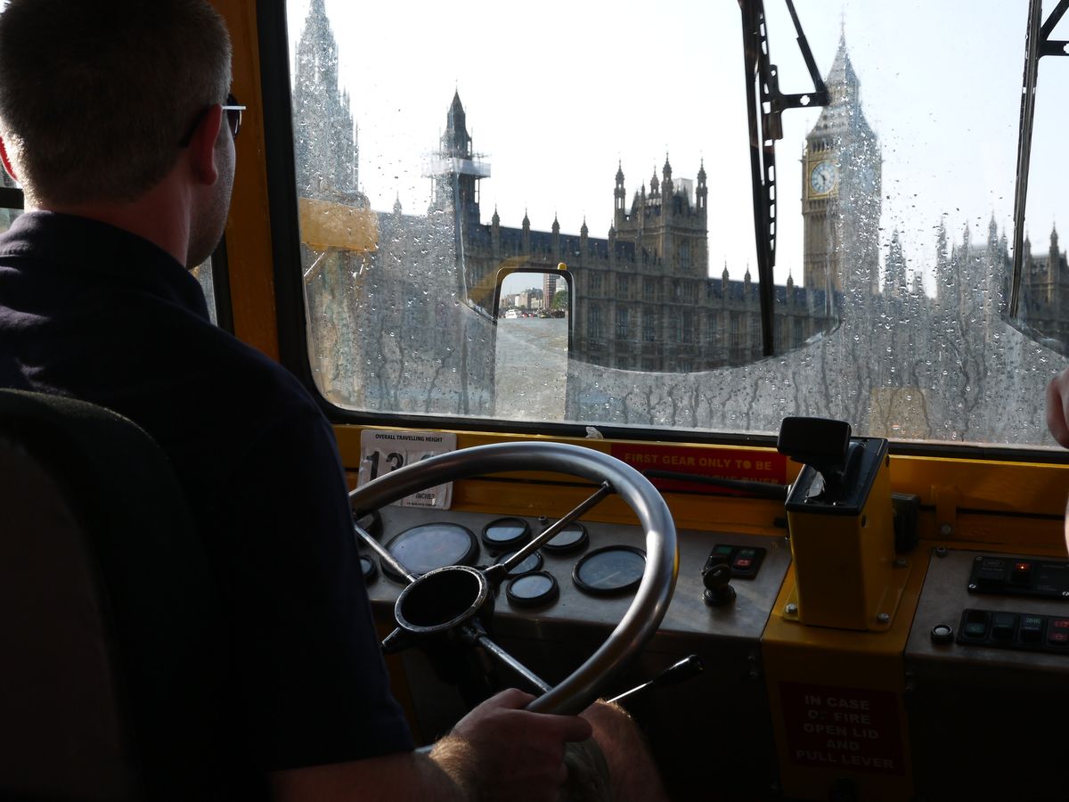 前半は町を陸車両で走ります。国会議事堂、ビッグベン、ウェストミンスター寺院、トラファルガルー広場などを周りガイドのお兄さんがジョークを交え元気に楽しくテンション高めで英語で説明をしてくれます。