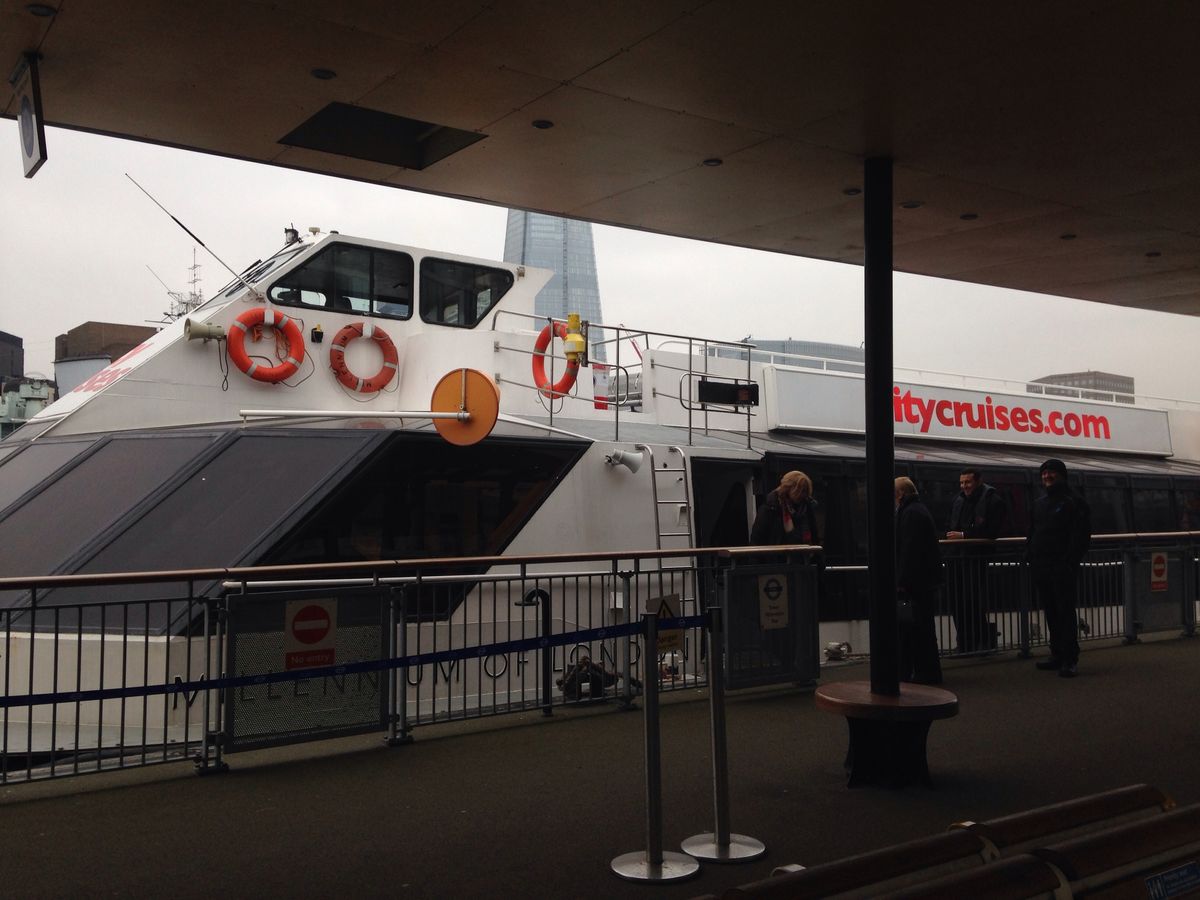 最後船に何か不具合があったらしく、出発地のエンバンクメント・ピアではなくタワー・ミレニアム・ピアで停泊しそのまま何の説明もなく十分強。私たちは「何か変だねぇ」と言い合うばかりでボケーっとしてましたが、終了予定時刻も過ぎほかの方々が騒ぎ始めてからようやく船内放送が。(放送だけでなくスタッフにも再度アタックしましたが、ヒアリングできず)結局何が起きたのかはよく分かりませんでしたが、待ちたくないなら下船しても良いとのことだったのでさっさと降りて地下鉄のTOWER HILLから帰りました。