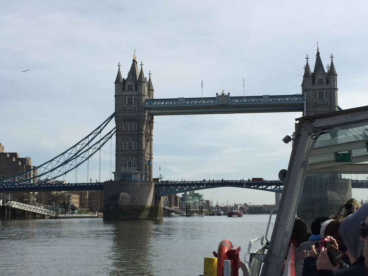 窓越しに見るロンドンの街並み、エリザベスタワーに優雅な気分を感じつつ、ロンドン塔の下をくぐり抜ける瞬間には乗客の歓声で船内が一体になりました。