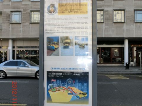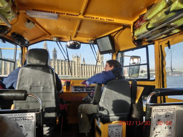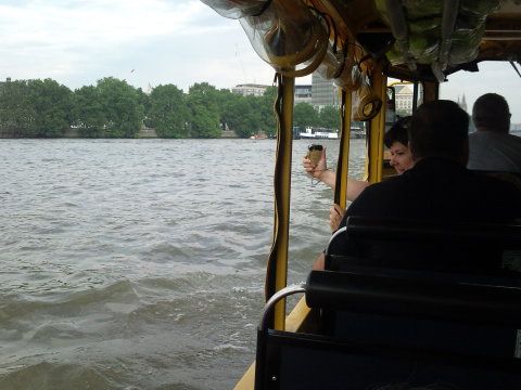とにかく目立つ車体と色、道路を走っている最中、テムズ川を船でもない車でもない物体が遊覧している。なんだアレは・・・人が乗っているゾ・・・。とにかく目立つダックツアーでした。面白かった。また乗ろうかな。