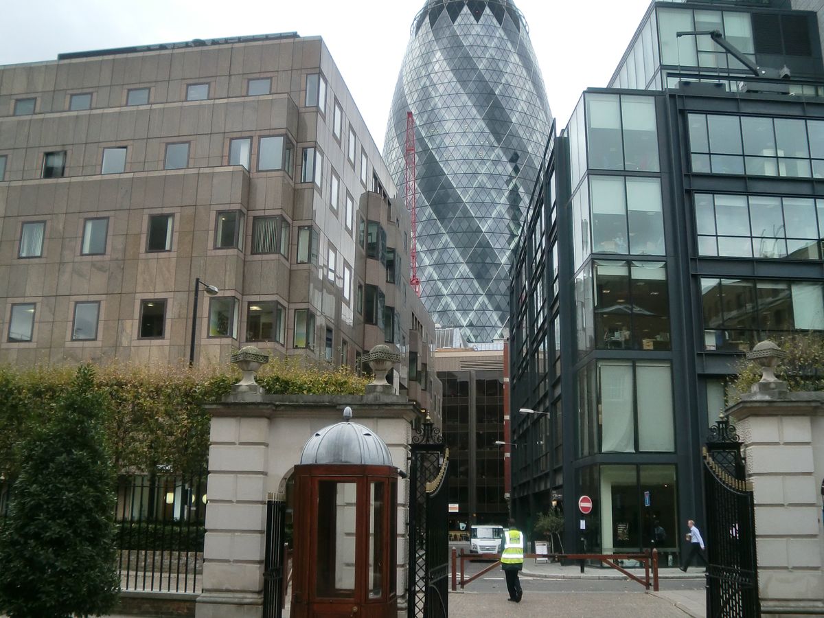 前に来た時に見て見たいと思っていたガーキン(きゅうりのピクルスのようなビル)とシティの近辺を案内して頂きました。
