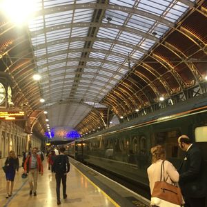 入国手続きに少々時間がかかったが、空港の「Heathrow Express」の案内表示にそってホームまで順調に到着(特に改札はない)。前の電車が出たばかりだったのか、13分後に来るという表示。時間通りに電車が到着。ホームにファーストクラスがどの場所に止まるのかの表示がなく?、私たちが立っていた場所がファーストクラスの場所だったようで少しホームを移動しての乗車。特に車内は混雑はしておらず、座れた。ほどなくして、車掌がチケットを確認に来て、事前にプリントアウトしておいたバウチャーを見せてOK。あっという間にパディンドン駅に到着。早くて快適でした。