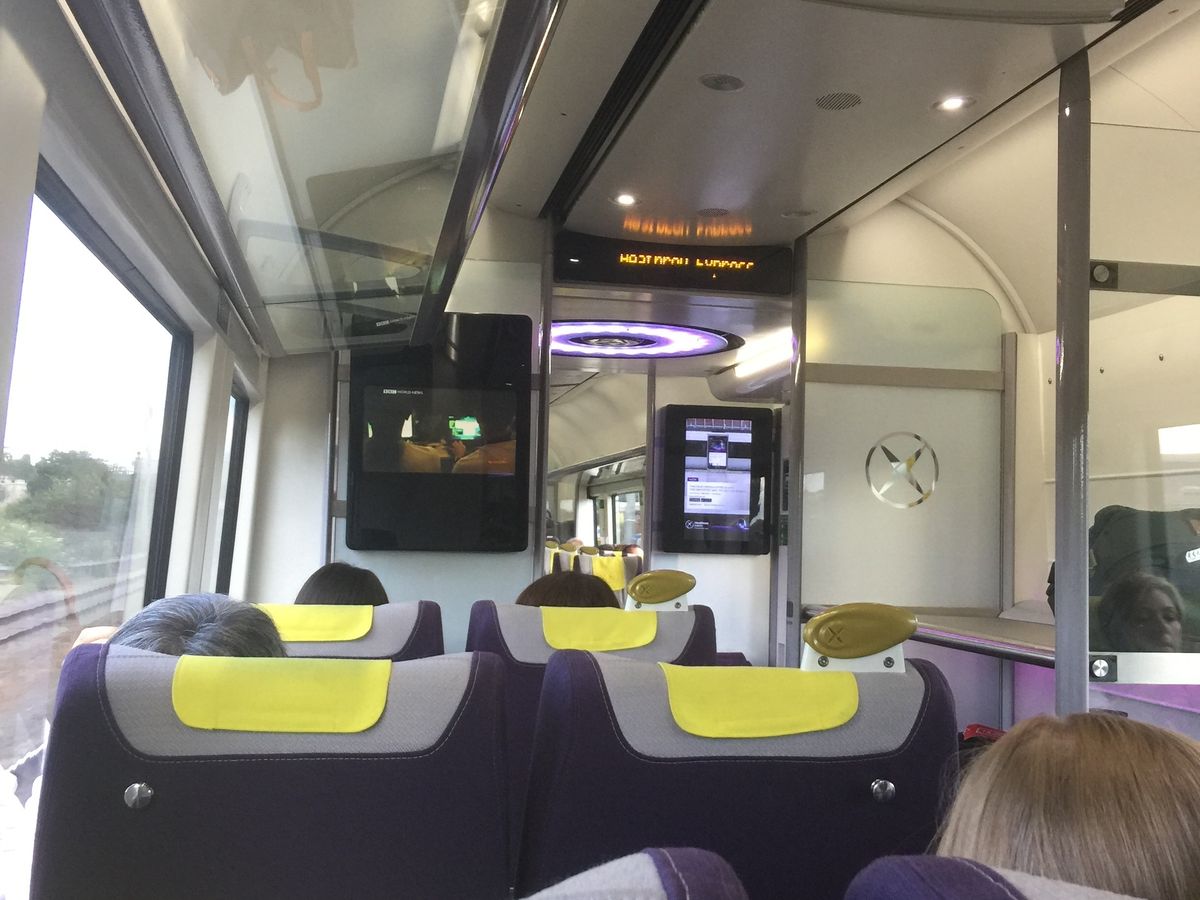 印刷した紙ではチケットにはならない、との説明でしたが、別途チケットを発券する必要はありません。印刷した二次元バーコードを車内改札で読み取って、内容を確認してもらいました。携帯でも大丈夫のようです(携帯の画面を読み取ってもらっている外国人もいました)。料金は、1か月前の早割であればかなりお得ですが、それを切ると、時間帯によっては現地で購入する方が安くなります。帰りは自分でチケットを購入しましたが、AM5:40の便は、駅に人も少なく、すぐに購入できた上、大人2人で30ポンドでした。