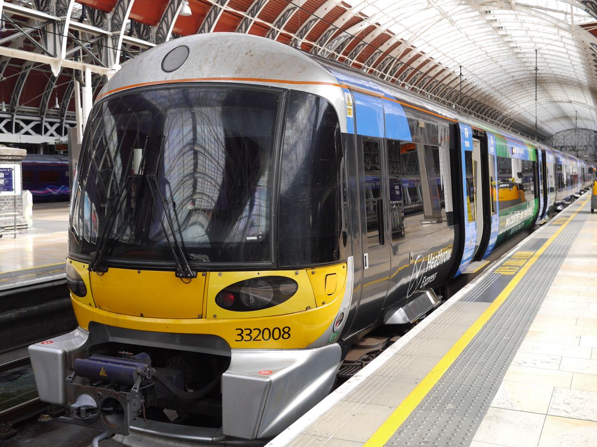 入国手続きに少々時間がかかったが、空港の「Heathrow Express」の案内表示にそってホームまで順調に到着(特に改札はない)。前の電車が出たばかりだったのか、13分後に来るという表示。時間通りに電車が到着。ホームにファーストクラスがどの場所に止まるのかの表示がなく?、私たちが立っていた場所がファーストクラスの場所だったようで少しホームを移動しての乗車。特に車内は混雑はしておらず、座れた。ほどなくして、車掌がチケットを確認に来て、事前にプリントアウトしておいたバウチャーを見せてOK。あっという間にパディンドン駅に到着。早くて快適でした。