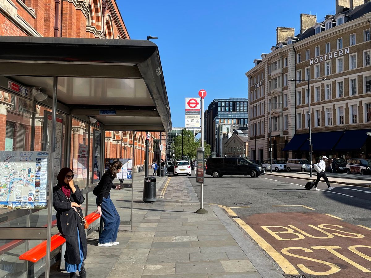 キングクロス駅のバス停はSt Pancras駅側です。バス停には各社チケット確認のスタッフがいるので事前に声を掛けておくと安心です。