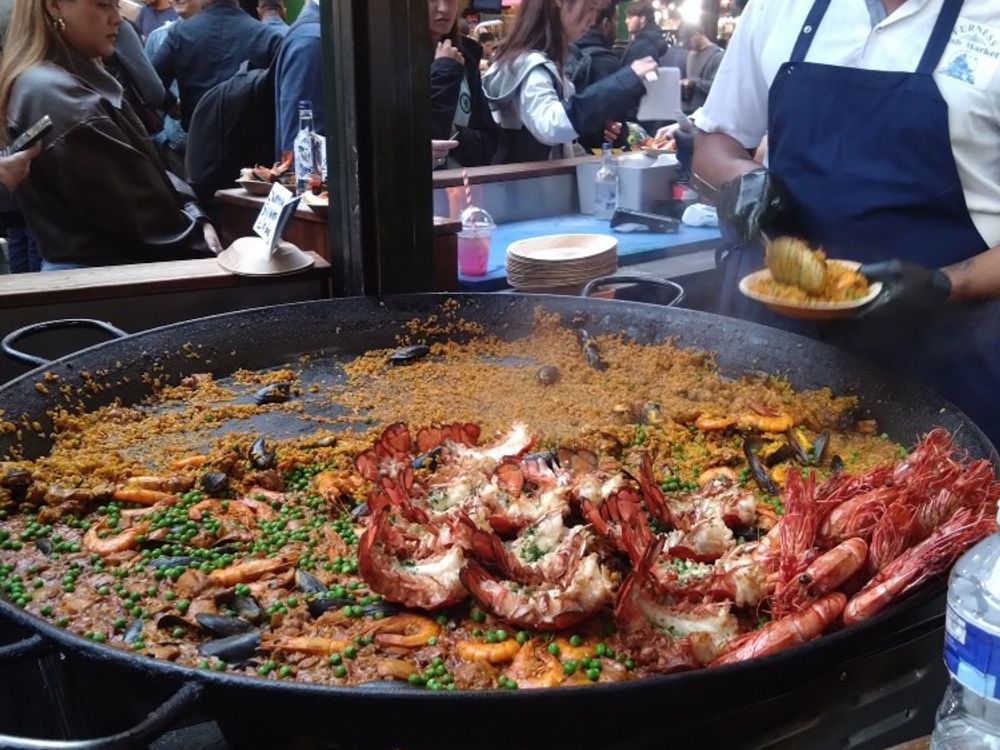 ロンドン橋近くのバラ・マーケットにも撮影場所があり、せっかくなので遅いランチ代わり人気のパエリアとリゾットをいただきました。(美味しかった!!)