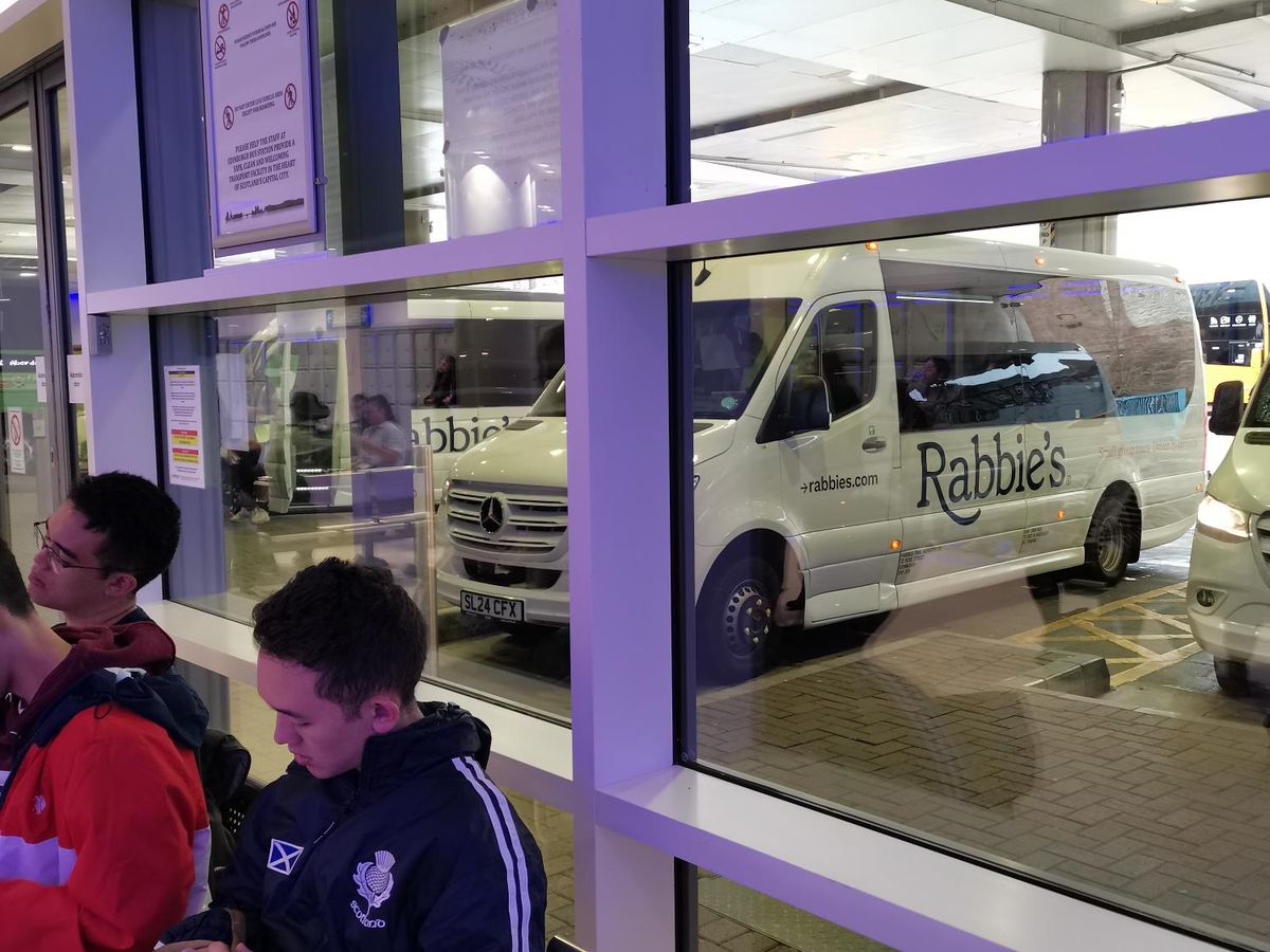 集合場所は、Edinburgh Waverley駅近くのバスターミナル。同じ場所から同じような行き先のバスが出発しているため、自分が乗るべきバスか否かを要確認。
