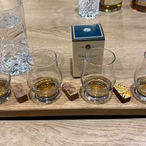 〇1時間半くらい走って(途中、スターリング城近くで記念撮影タイムあり)、11時頃にグレンゴイン蒸留所(写真2)に到着。蒸留所内はメンテ中とのことで、外見のみのガイドツアー。(返金などはありません。)テイスティングは、10年と15年(写真3)とウィスキーカクテル(写真4)の3種。このカクテルがとても美味しいのですが、度数が高いのか結構酔っぱらいます。ショップではツアー参加者割引がありますが、物価高と円安で日本の2倍の価格!!ミニチュアボトルセットとロゴ入りテイスティンググラスのみ購入。
