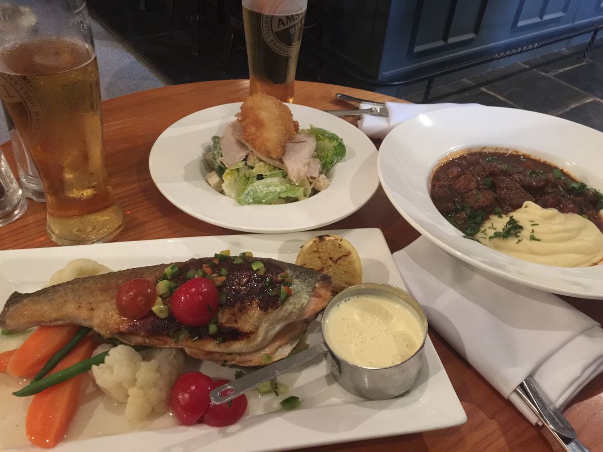 カッスル・クームでお昼ご飯を食べましたが、ジェイミーオススメのレストランの一つにはいりました。この後の数日間のイギリス旅行で私たちが食べた食事の中でも絶品の味でした。フィッシュアンドチップス、お魚のコロッケ、シチューなど、どれをとっても絶品、付け合わせのジャガイモも、自家製のタルタルソースも味わったことのない味!地元のビールも何種類か飲みましたがこれまた美味!静かな贅沢な時を過ごしました。