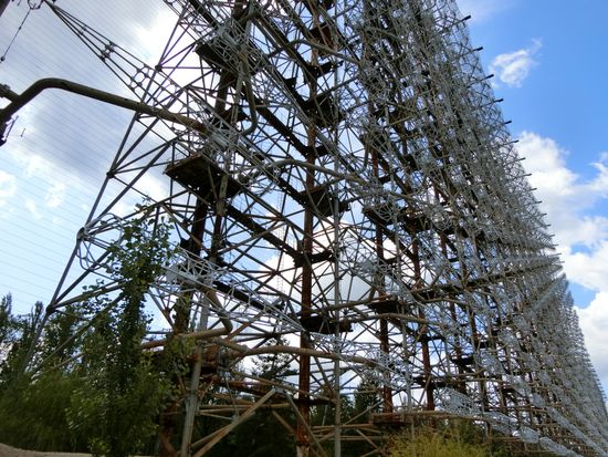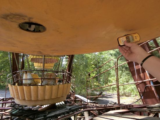 安全性については、シェルターに覆われた事故機の数十メーター手前まで行きましたが、ガイガーカウンターは無反応、ただし、ごく普通の場所で突然警報が鳴ったりするので(ホットスポット)、ガイドさんの案内に注意する必要があります。(勿論、ガイドさんはホットスポットの位置を把握しています。)なお、ツアー中は放射線量測定器を首から下げ、終了時にトータルの線量をチェックされますが、通常のコースを外れなければ飛行機に1時間乗った時と同程度とのことで、ガイドさんは「日本からここに来るまでの飛行機の中の方がたくさん放射線を浴びているよ」と笑っていました。