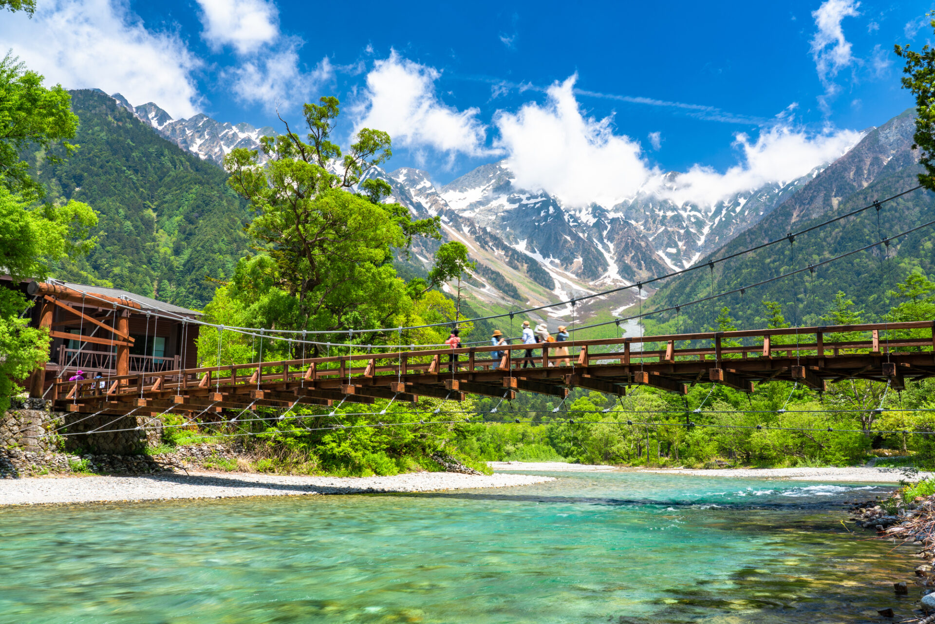 河童橋からは、上高地の自然を360度のパノラマで楽しむことができ、四季折々の風景が訪れる人々を魅了します。夏には緑豊かな自然、秋には紅葉が美しい景色を作り出し、多くのハイカーや写真愛好家を引き寄せます。