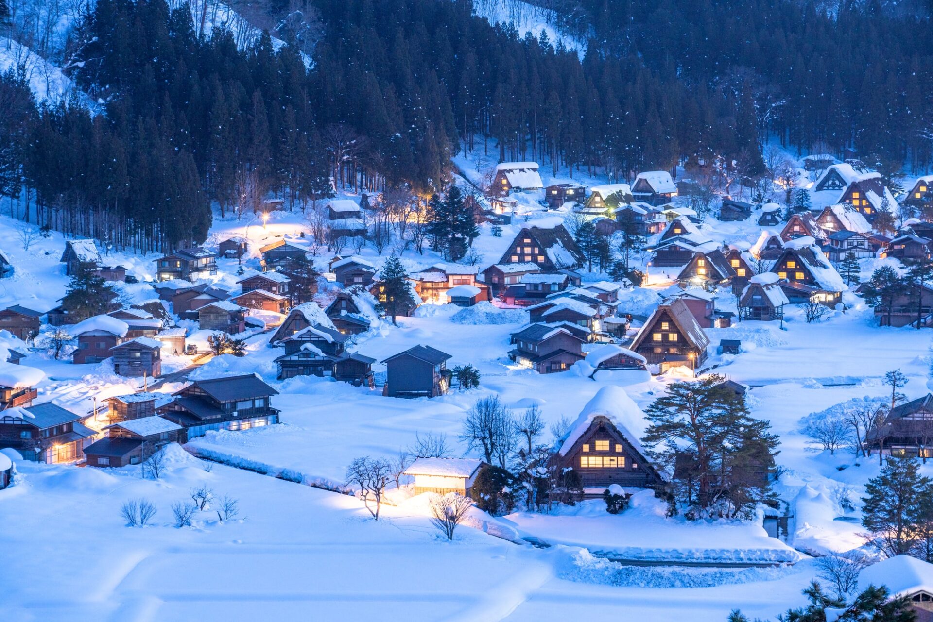 白川郷では1年を通し、様々なイベントが開催されています。とくに、紅葉や雪化粧した建物のライトアップは人気。駐車場の予約はすぐに満車になるほどです。