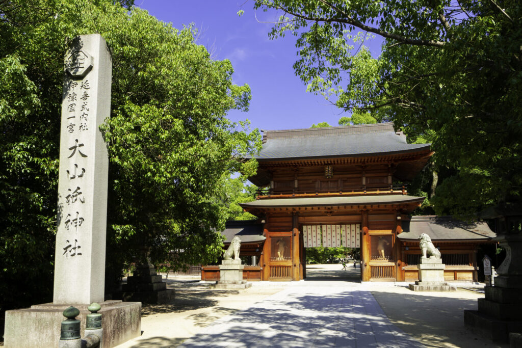 午後の訪問先は、日本建国の神とされている大山積(おおやまづみ)大神を祀る大山祇神社です。源平時代の武具が展示されている宝物館(紫陽殿・国宝館)は、歴史好きにとって見逃せないスポット。境内中央に鎮座する樹齢2600年の楠は国天然記念物として指定されており、その壮大な姿は訪れる人々を圧倒します。大山祇神社は、歴代の天皇や武将たちが戦勝祈願のために鎧や兜、刀剣などの武具を奉納したことでも知られています。