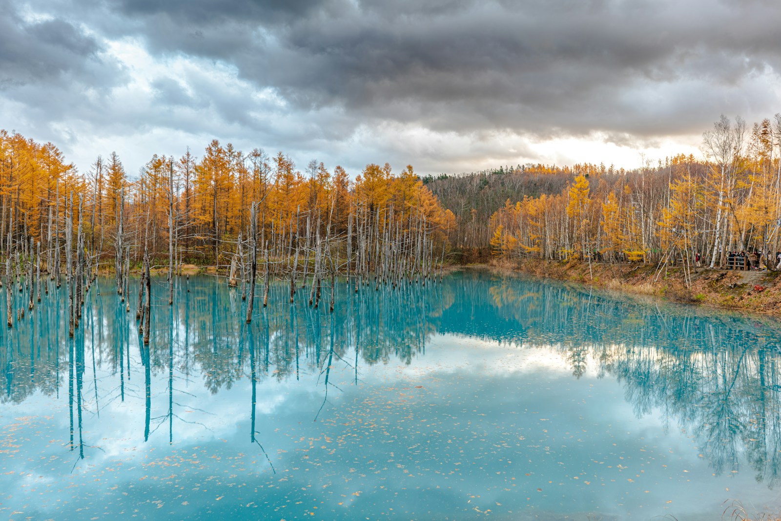美瑛にある白金青い池は、その名の通り、驚くほど青い水面が特徴的な観光スポットです。特に10月には、周囲の紅葉と青い池のコントラストが美しく、訪れる価値があります。池の周りを散策しながら、自然の美しさを堪能してみませんか。