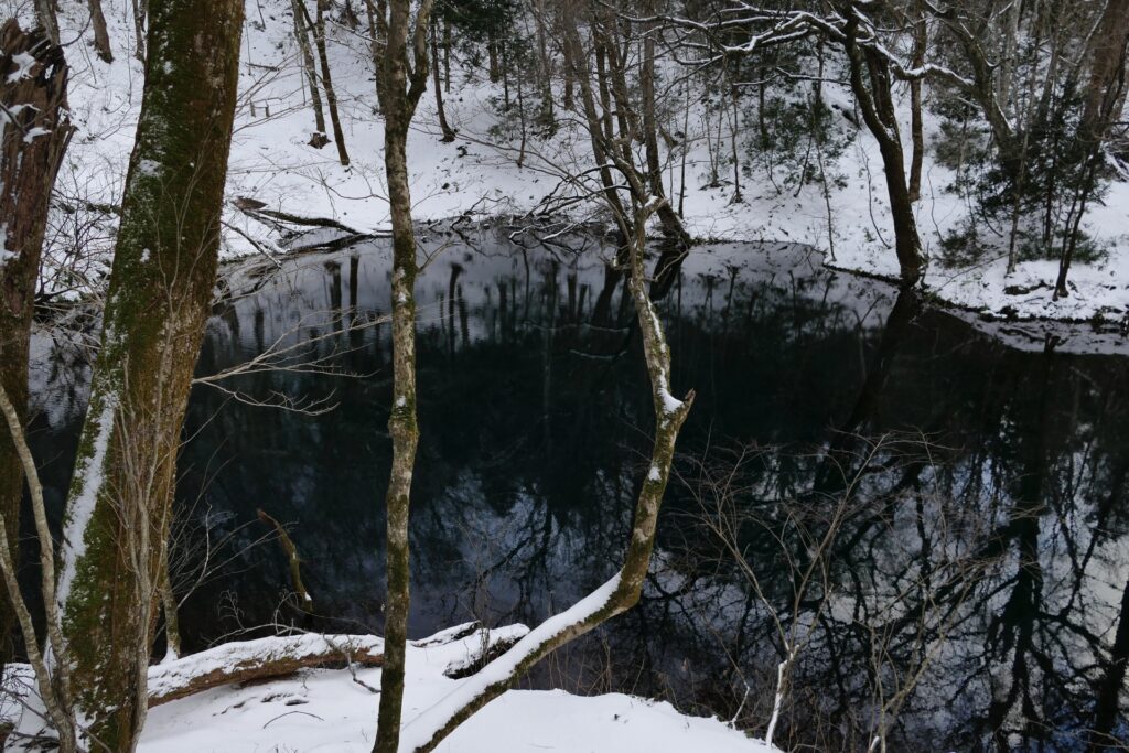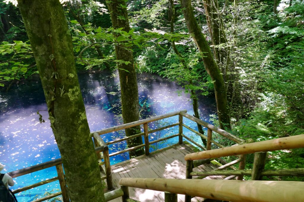 青池は、その名の通り透き通った青い水が特徴の池です。白神山地の中でも特に人気のスポットで、訪れる人々を魅了します。池の透明度は驚くほど高く、まるで鏡のように周囲の景色を映し出します。