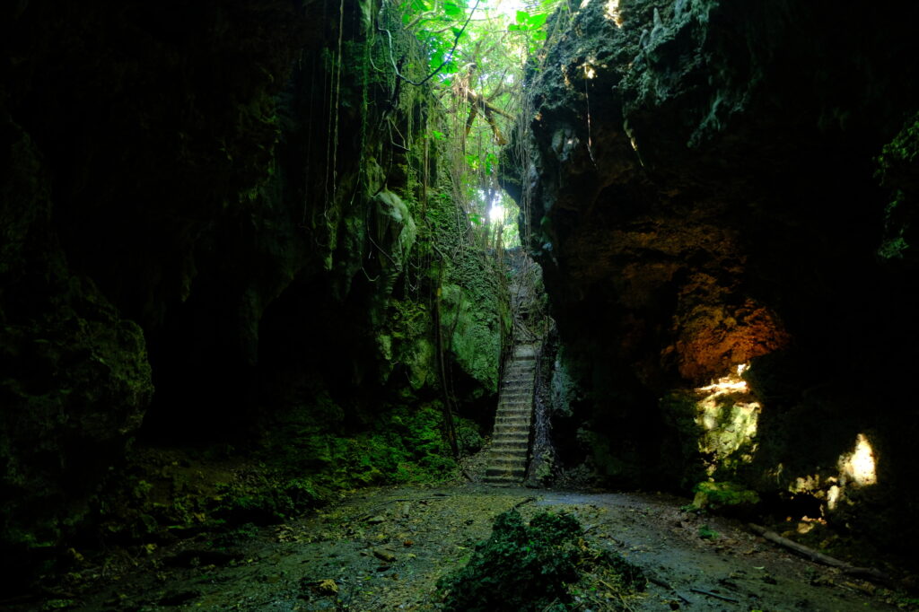 ヌドクビアブは、地上から見ただけでは想像もつかないほど深く、広さもある鍾乳洞です。戦時中は防空壕として使われていました。