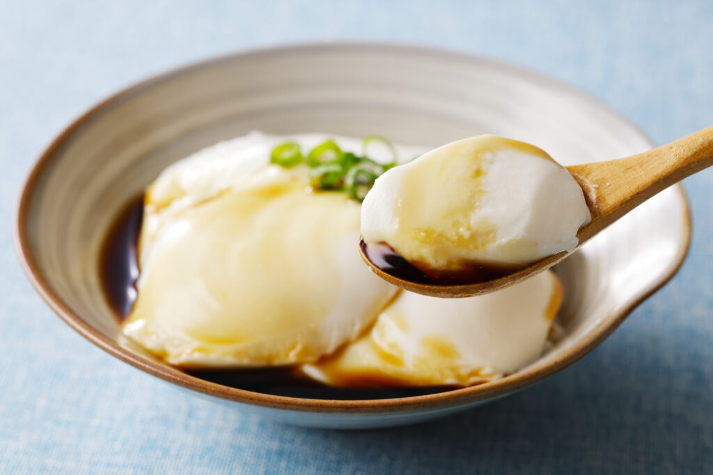 落花生を素材に作られたジーマミー豆腐は、味わいそのものも風味が強く、ほんのりとした甘みを感じます。また、コシが強いお豆腐で、ポロポロと崩れることはあまりありません。食べる際は冷やしたままでも、温めても美味しくいただけますよ。