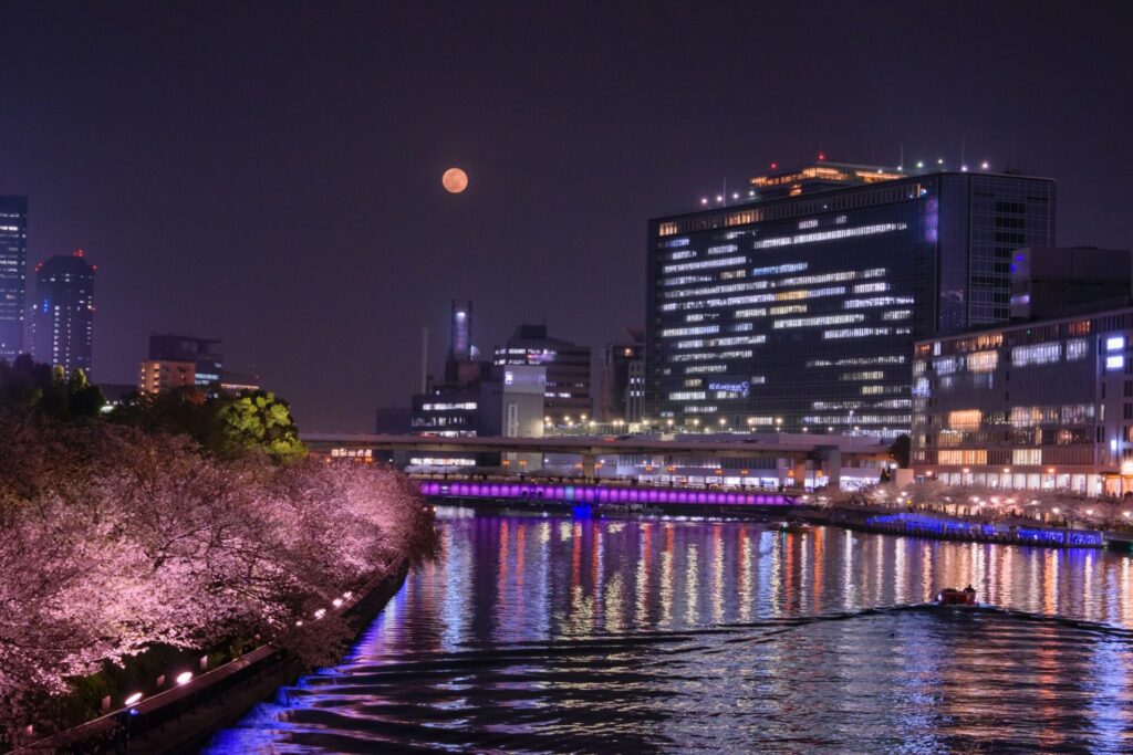 大阪の夜桜を楽しむなら、ライトアップされた名所が見逃せません!ロマンチックなお城と桜のライトアップや、水面に映る桜とライトアップが織りなす美しい景色が魅力です。