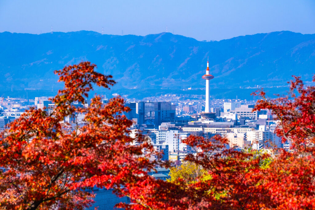 京都駅周辺には、秋の風情を満喫できる紅葉スポットが数多く点在しています。また、夜間はライトアップされ、幻想的な紅葉の競演を楽しめます。