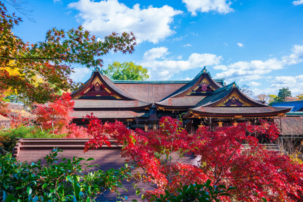 北野天満宮は、学問の神様として知られる菅原道真公を祀る神社で、その美しい庭園は四季折々の風情を楽しむことができます。特に秋の紅葉の季節は、多くの観光客で賑わいます。