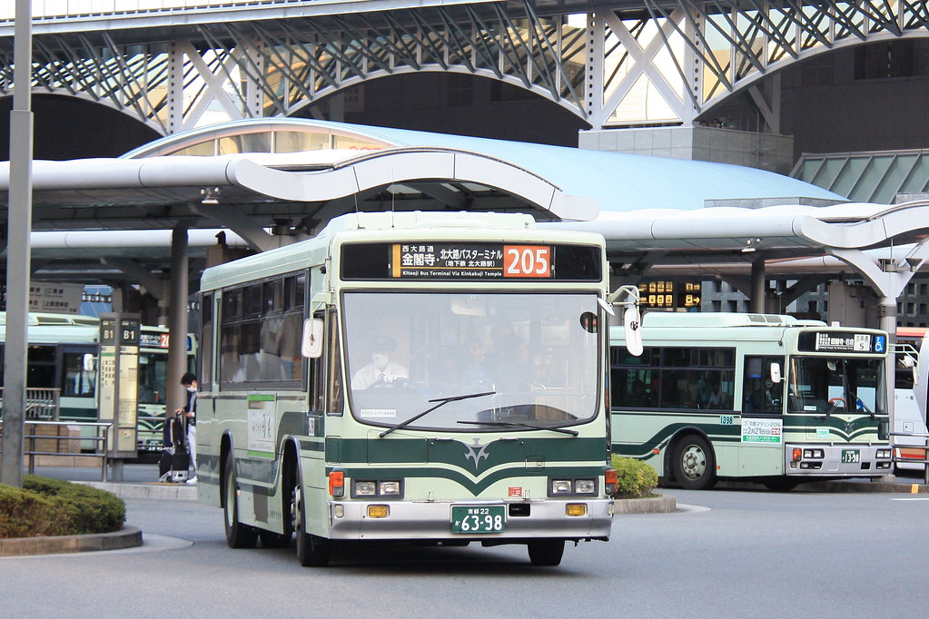 京都駅から金閣寺へは、バスを利用するのが便利です。市バスの205系統または101系統に乗りましょう。所要時間は約40分で、運賃は230円です。バスは頻繁に運行しているので、待ち時間も少なくて済みますよ。