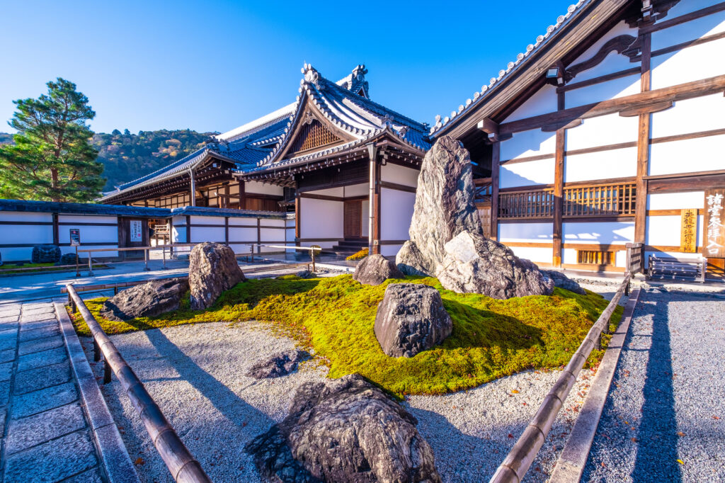 見どころは、日本で初めて「史跡・特別名勝」に指定された庭園。嵐山・亀山を借景にした、美しい庭園を鑑賞しましょう。季節によって見られる景色は変わるため、何度も訪れたくなる名所です。