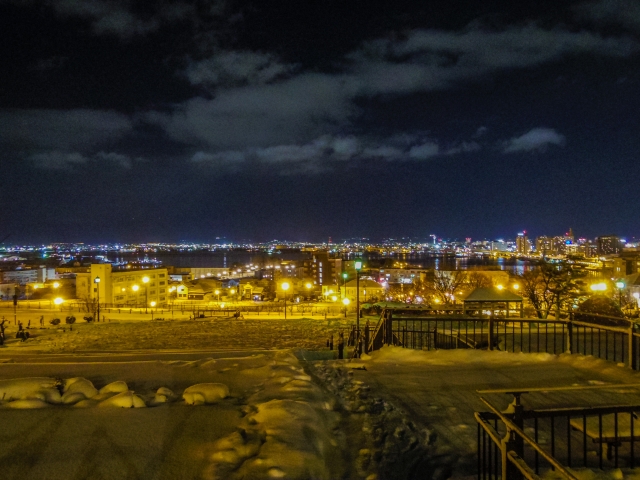 函館山ロープウェイに乗って、夜景を楽しみましょう。函館山の山頂からは、宝石のように輝く函館市街の夜景が一望できます。特に晴れた日には、遠くまで見渡せる絶景が広がりますよ。