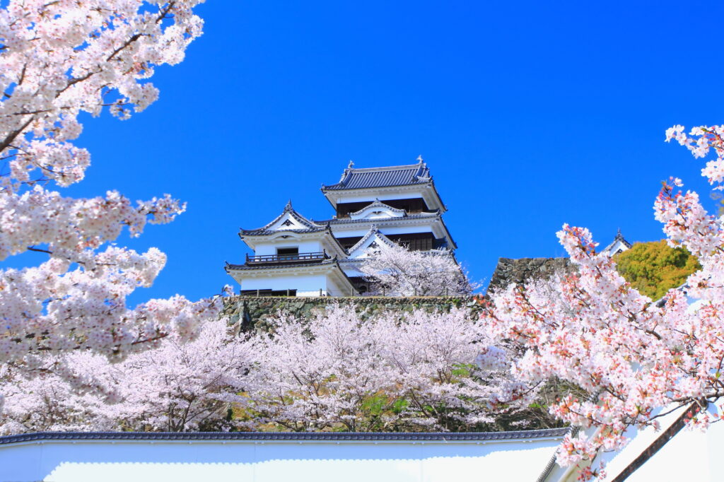 大洲城は、愛媛県大洲市にある歴史的な城で、その美しい風景と豊かな歴史が魅力です。城は、戦国時代の名将・藤堂高虎によって築かれ、その後も幾度となく改築されてきました。現在の城は、昭和時代に再建されたもので、その壮大さと美しさは訪れる人々を魅了し続けています。大洲城の天守閣からは、大洲市の町並みを一望でき、四季折々の風景を楽しむことができます。