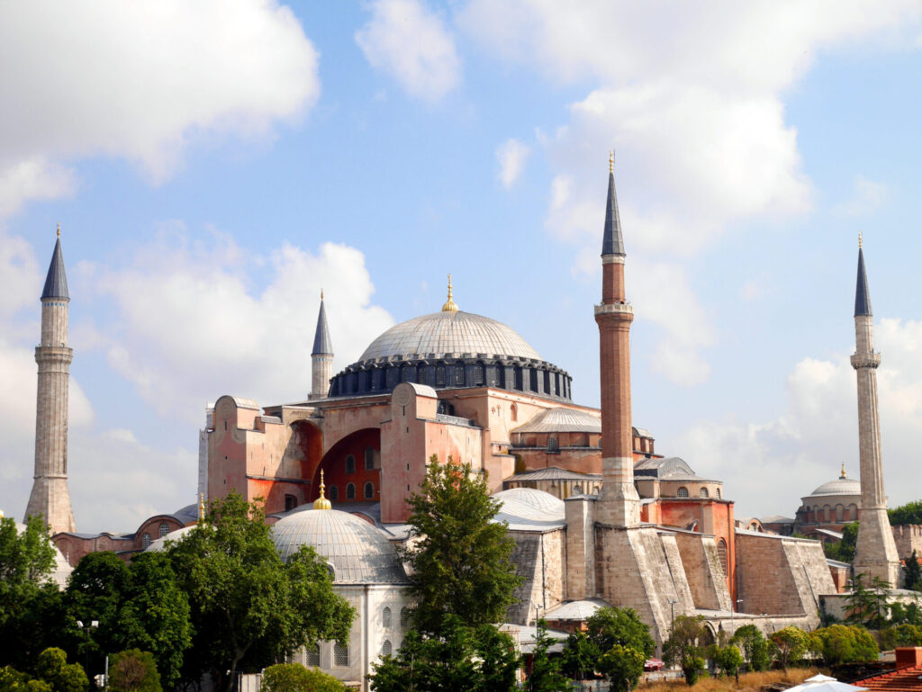 イスタンブールの心を象徴するアヤソフィアは、その壮大な姿で訪れる人々を圧倒します。537年に建築されたこの建物は、教会、モスク、そして博物館としての役割を経て、現在は再びモスクとしての機能を持ちながらも、観光客に開放されています。