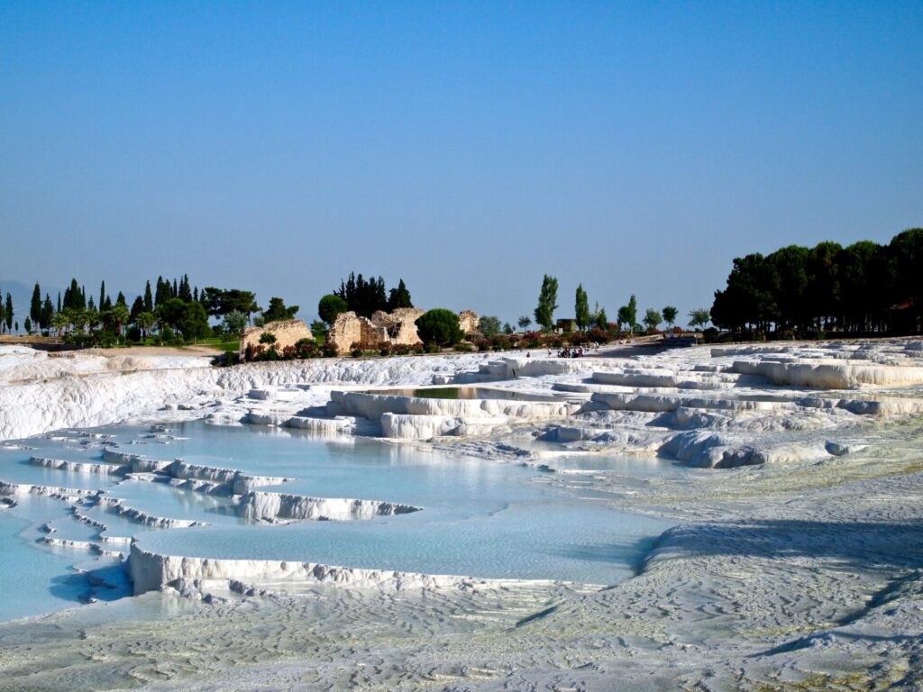 午前中は、白く輝く石灰棚が広がるパムッカレで、その神秘的な美しさをカメラに収めましょう。石灰棚からの眺めは、訪れる人々を魅了し続けています。