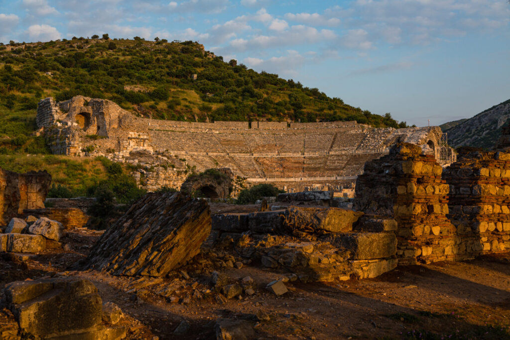 まず訪れたいのがエフェソス遺跡です。特に夕方がおすすめで、夕日を背に散策し、その壮大な遺跡を堪能しましょう。