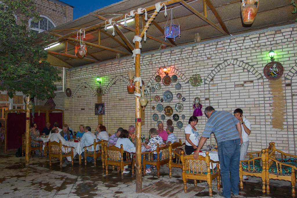 ブハラの中心には、リャビハウズという池があり、その周りには多くのカフェやレストランが並んでいます。観光の合間にここで一息つくのもおすすめです。特に「Old Bukhara Restaurant」は、地元料理を楽しめる人気のスポットです。内装もかわいらしく、店員さんの対応も丁寧です。