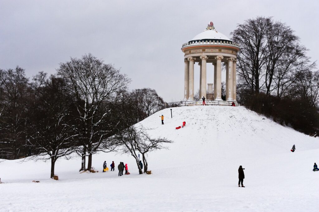 ミュンヘンの冬は、さまざまなアクティビティで楽しむことができます。次のパートでは、イングリッシュ・ガーデンでの雪遊びやオリンピアパークでのトボガンラン、ミュラーシュ・フォルクスバッドのローマ風呂など、冬ならではの楽しみ方をご紹介していきます。