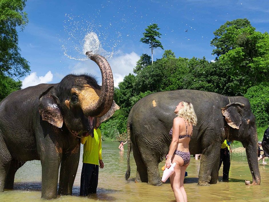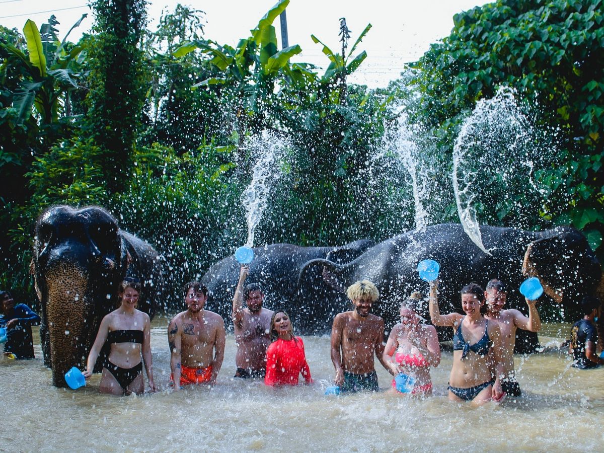 ・象との泥スパ&水浴び:象の体に泥を塗る手伝いをしたり、川に入って象を優しく洗ってあげたりする中で、彼らの心からの安らぎを一緒に感じられます。