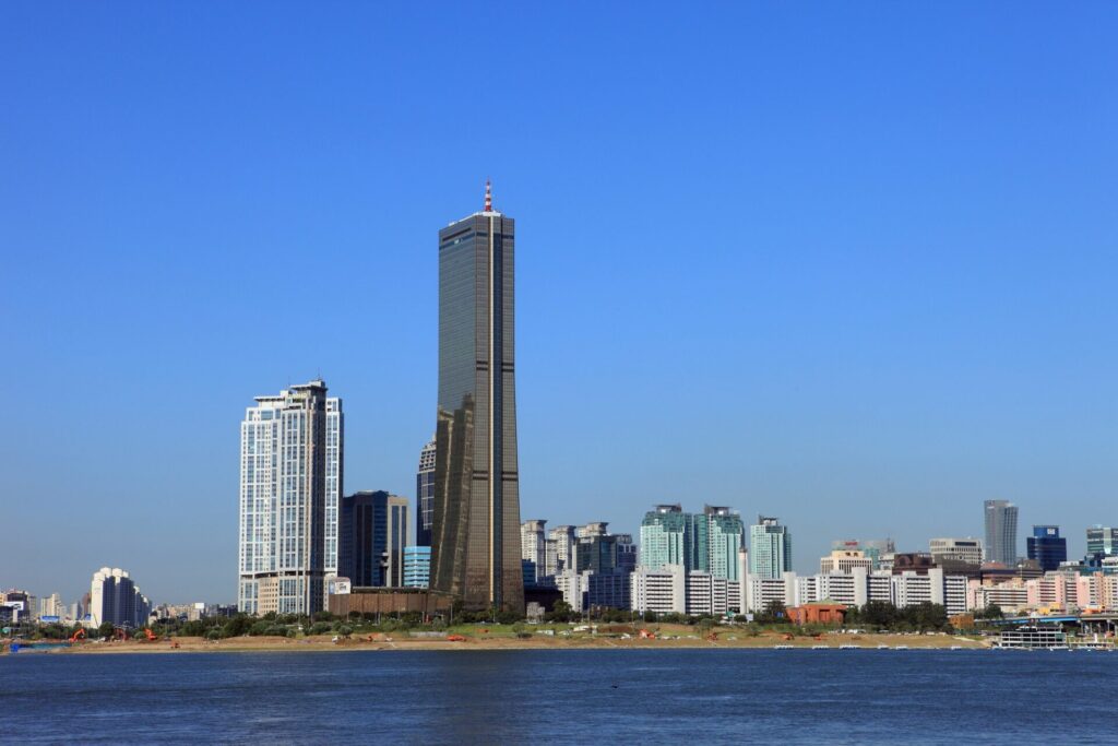 ソウルのランドマークとして知られる「63ビルディング」は、地上60階建て、高さ264mの壮大な建築物です。その壁面には純度の高い24金でコーティングした特殊ガラスを使用しており、日差しを浴びて輝く姿から「ゴールデンタワー」とも呼ばれています。。