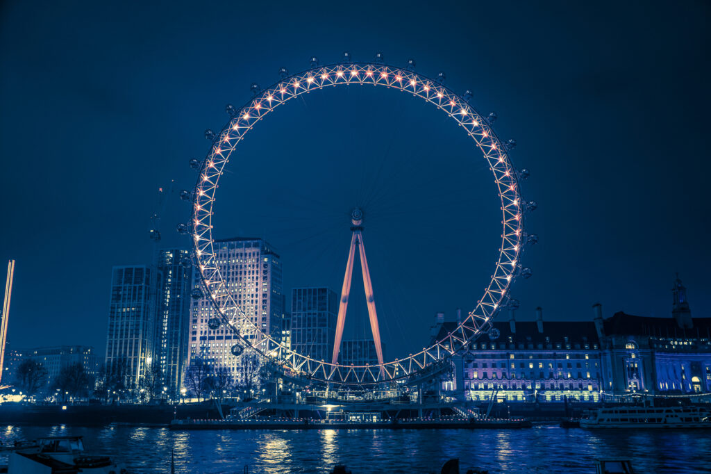 ロンドン アイの一周は約30分。ゆっくりと回転する観覧車からは、ロンドンの街並みをじっくりと堪能することができます。特に夕暮れ時のロンドン アイからの眺めは、ロンドンの街がオレンジ色に染まる様子を見ることができ、非常にロマンチックです。また、ロンドン アイは夜になるとライトアップされ、テムズ川に映るその姿はまるで宝石のよう。夜景を楽しみたい方にもおすすめです。