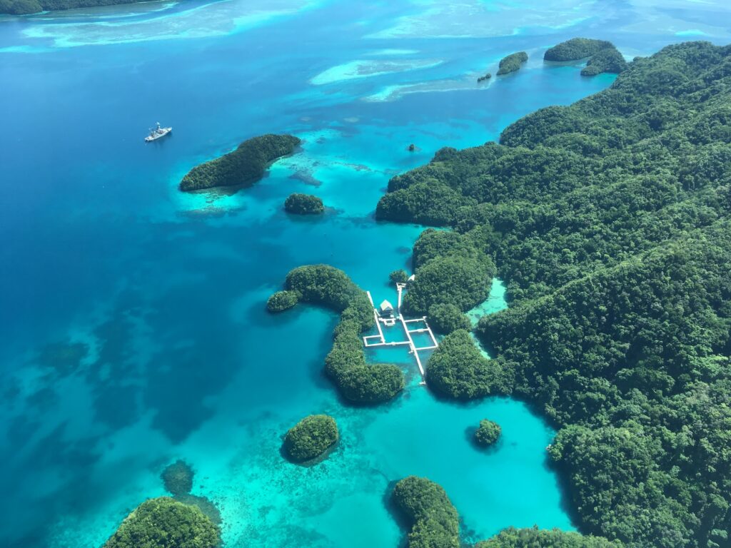 セブンティアイランドは、セスナ飛行機で空から見るのがおすすめです。上空から見ると、パラオブルーと呼ばれる鮮やかな青の海と、大小さまざまな島々が広がっている様子が一望できます。この絶景は、一生の思い出になること間違いなしです。