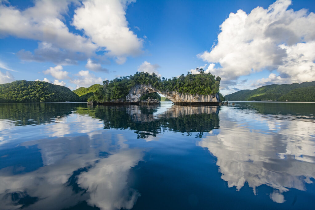 パラオのロックアイランドにあるナチュラルアーチは、自然が作り出した壮大なアーチ型の岩が海上にそびえ立ち、圧巻の景観が広がっています。その美しさは、まるでミルキーウェイが地上に降り注いだかのよう。この地域には、ビーチや砂浜、海岸など、自然と触れ合えるスポットが豊富に点在しています。また、近くには歴史的な遺跡も存在し、文化的な側面も楽しめるでしょう。
