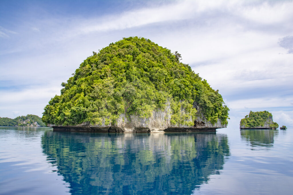 パラオ共和国の象徴ともいえる「ロックアイランド」。その名の通り、大小さまざまな岩が点在するこの島々が並んでおり、自然が作り出した美しい風景を楽しめるスポットです。透明度が高い海水と、緑豊かな島々が織りなす景色は、まさに絶景。一度は訪れてみたいスポットのひとつです。