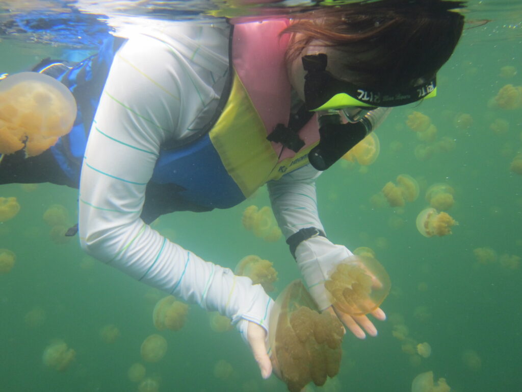 ジェリーフィッシュレイクは、その美しい自然環境と共に訪れる人々を魅了しています。湖に生息するクラゲたちは、毒を持たない種類なので、安心して泳げます。その不思議な体験は、訪れる人々にとって一生の思い出となるでしょう。パラオの美しい海と自然を体験しながら、素晴らしい時間を過ごしてみませんか。