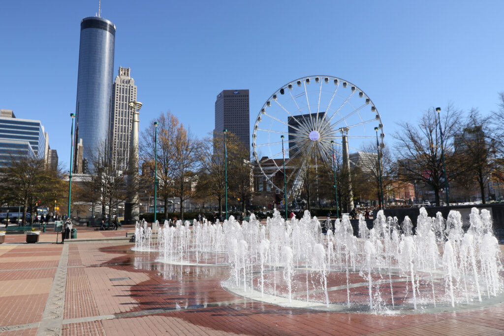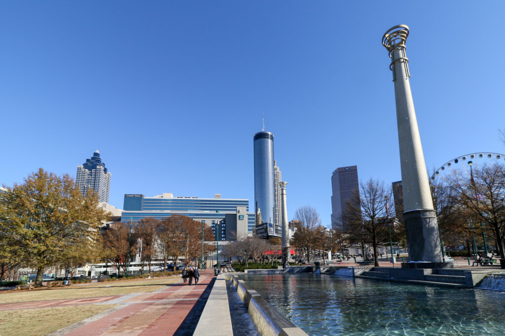 公園内には、子供たちが楽しめる遊具や広場もあり、家族連れにもおすすめです。また、公園内にはレストランやカフェも多数あり、美味しい食事や一息つく場所も充実しています。さらに、公園はアトランタのダウンタウンに位置しているため、ショッピングや観光の合間に立ち寄るのも良いでしょう。
