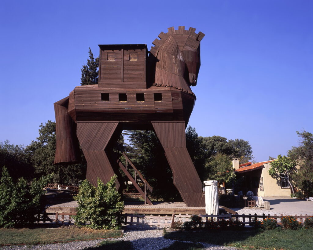 トロイ遺跡は、ギリシャ神話に登場する強大な都市トロイの舞台となった場所です。王妃ヘレネを巡るギリシャとの10年間の戦争の終結をもたらしたのが、巧妙な策略「トロイの木馬」でした。贈り物として差し出された巨大な木馬の内部に兵士が隠れていて、城内から奇襲をかけるという大胆な作戦が成功し、トロイは一夜にして陥落しました。