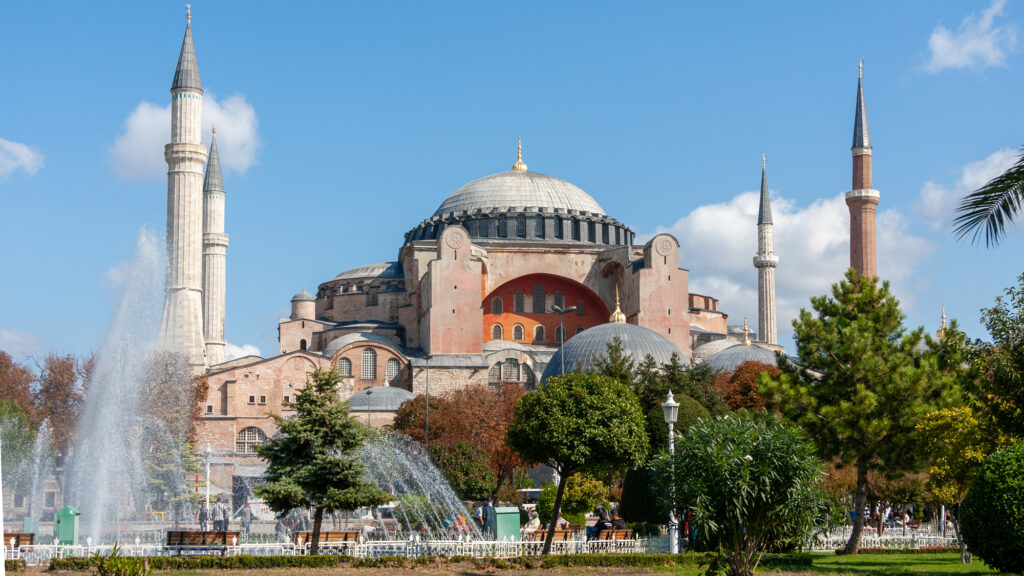 アヤソフィア大聖堂の歴史は、ローマ帝国からビザンツ帝国、そしてオスマン帝国へと続く時代の流れの中で形成されました。西暦537年にビザンツ帝国の時代にキリスト教の聖堂として建てられ、その後、イスラム教のモスクへと変わり、現在では博物館として公開されています。このように、アヤソフィア大聖堂は時代と共にその姿を変えてきましたが、その美しさと歴史的価値は今も変わることなく、世界中から観光客を引きつけています。