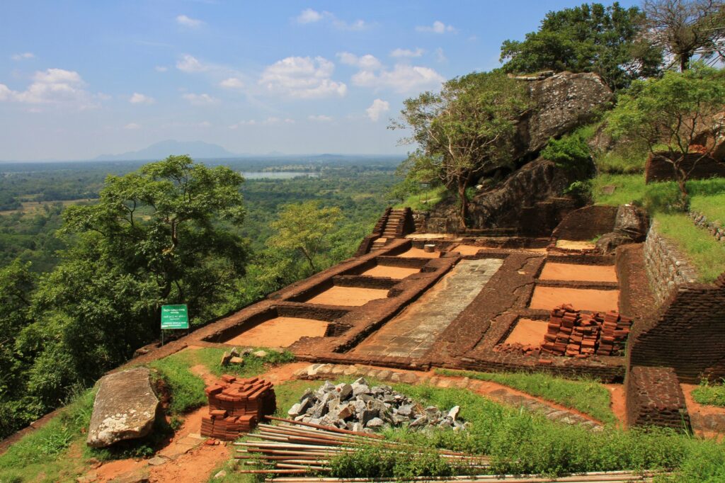 スリランカの象徴とも言える遺跡「シギリヤロック」は、その壮大な景観と歴史的な価値から世界遺産にも登録されています。岩山の頂上には5世紀に建てられたシギリヤ王の宮殿の遺跡が残っており、その壮大さと美しさは訪れる人々を魅了し続けています。岩山を登る途中には壁画や庭園なども点在しており、歴史と自然の美しさを同時に楽しむことができます。