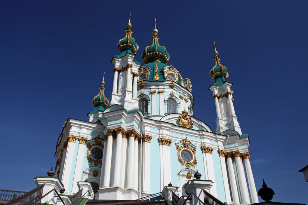 ウクライナの首都、キエフにあるアンドレイ教会は、その美しいロシア様式の建築で知られています。教会は、土産もの中心の露店が並ぶアンドレイ坂の上に位置しており、その外観および内部の装飾は見る者を魅了します。また、教会内部は無料で見学することができ、写真撮影も自由となっています。昼間は観光客が多く訪れるスポットで、その美しさと歴史を感じることができます。