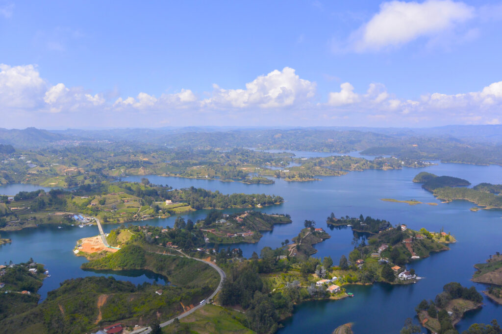 また、湖の近くには「La Piedra Del Peñol」という巨大な岩があり、その頂上からはグアタペの湖を一望できます。岩の上には700段以上の階段があり、登りきった先には壮大な景色が待っています。湖と街並み、そして遠くに広がる山々を見渡すことができ、その美しさには誰もが感動することでしょう。グアタペの湖と「La Piedra Del Peñol」は、コロンビアを訪れた際にはぜひとも訪れてみたいスポットです。