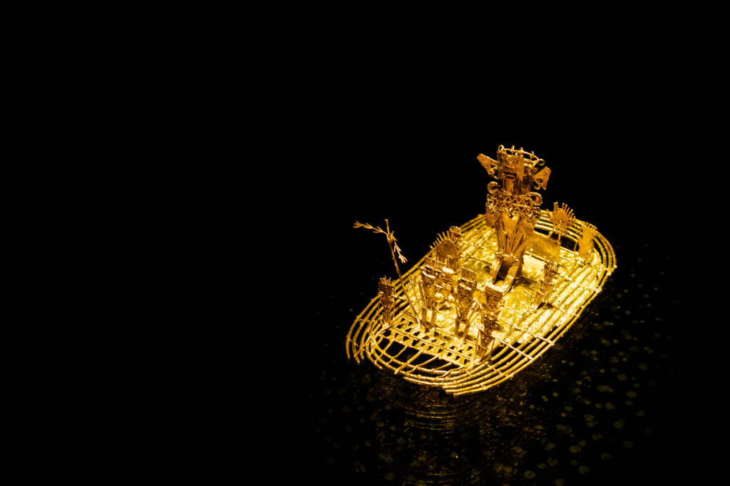 この博物館の代表作は『金のコカ壺』。シャーマンが儀式の際に使用したもので、国宝級の傑作と言われています。この壺を真横から見ると女性に見えてきます。また、博物館の収蔵品は55,000点に及び、常時6000点を展示しているそうです。展示は文化圏ごとに分かれており、ムイスカ、シヌー、タイロナ、ティエラデントロ、サン・アグスティンなどが紹介されています。
